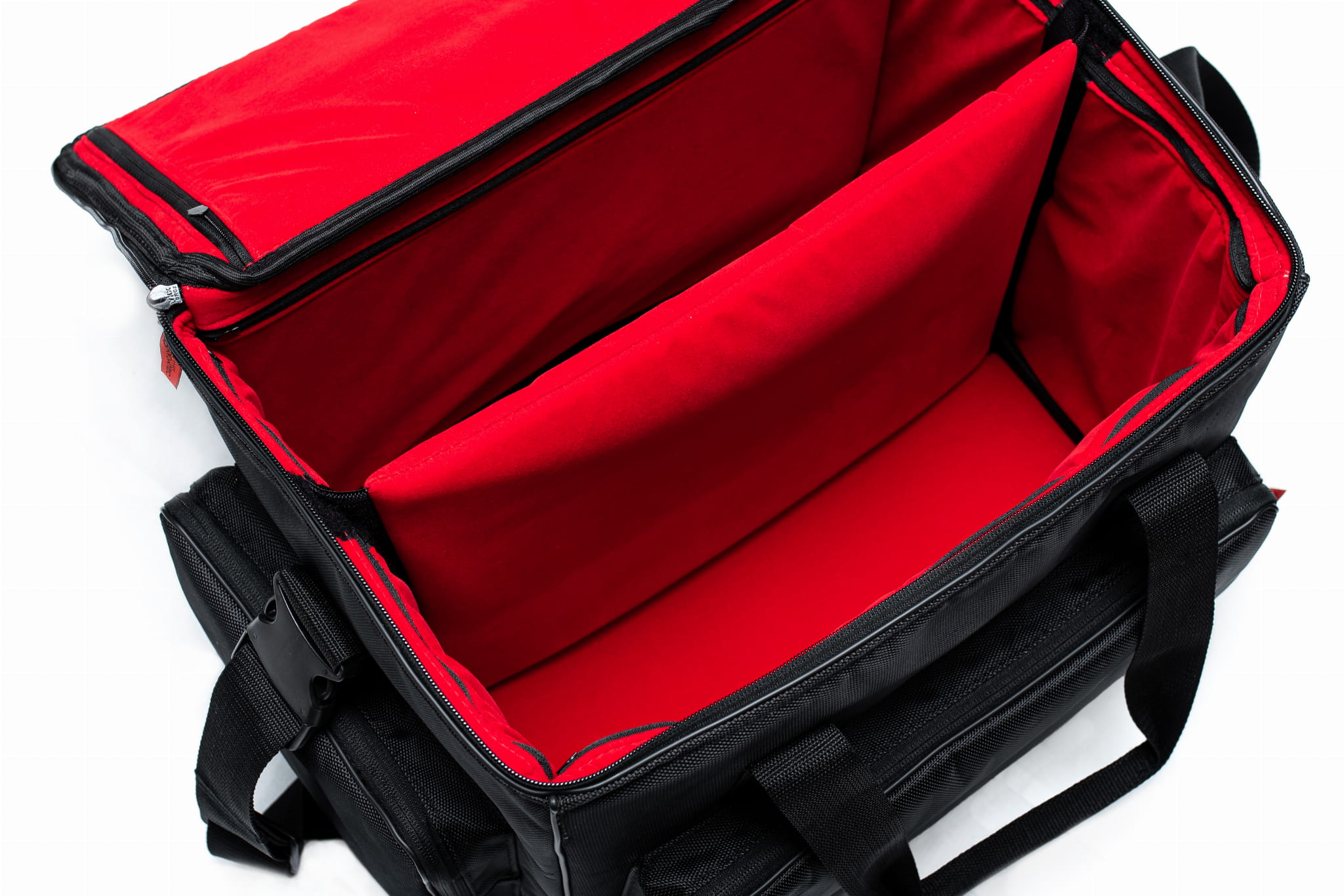 Wnętrze komory na odtwarzacze wyściełane jest wytrzymałym a zarazem delikatnym materiałem, pod którym kryje się 1 cm pianki. Wszystkie ściany torby są dodatkowo usztywnione bardzo wytrzymałą płytą PEHD.