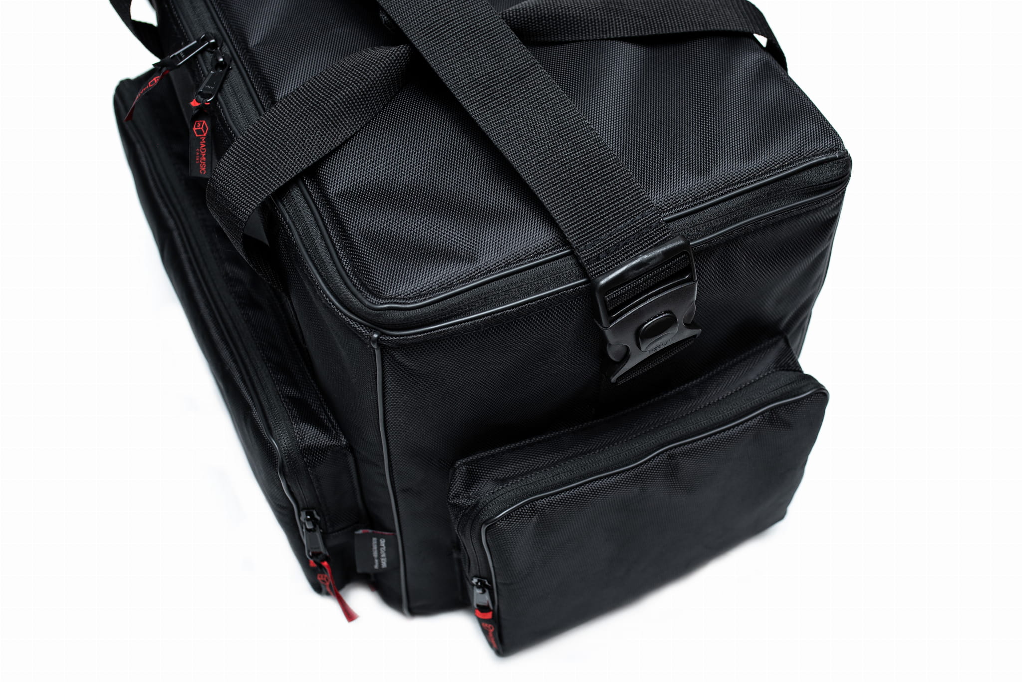 Wnętrze komory na odtwarzacze wyściełane jest wytrzymałym a zarazem delikatnym materiałem, pod którym kryje się 1 cm pianki. Wszystkie ściany torby są dodatkowo usztywnione bardzo wytrzymałą płytą PEHD.
