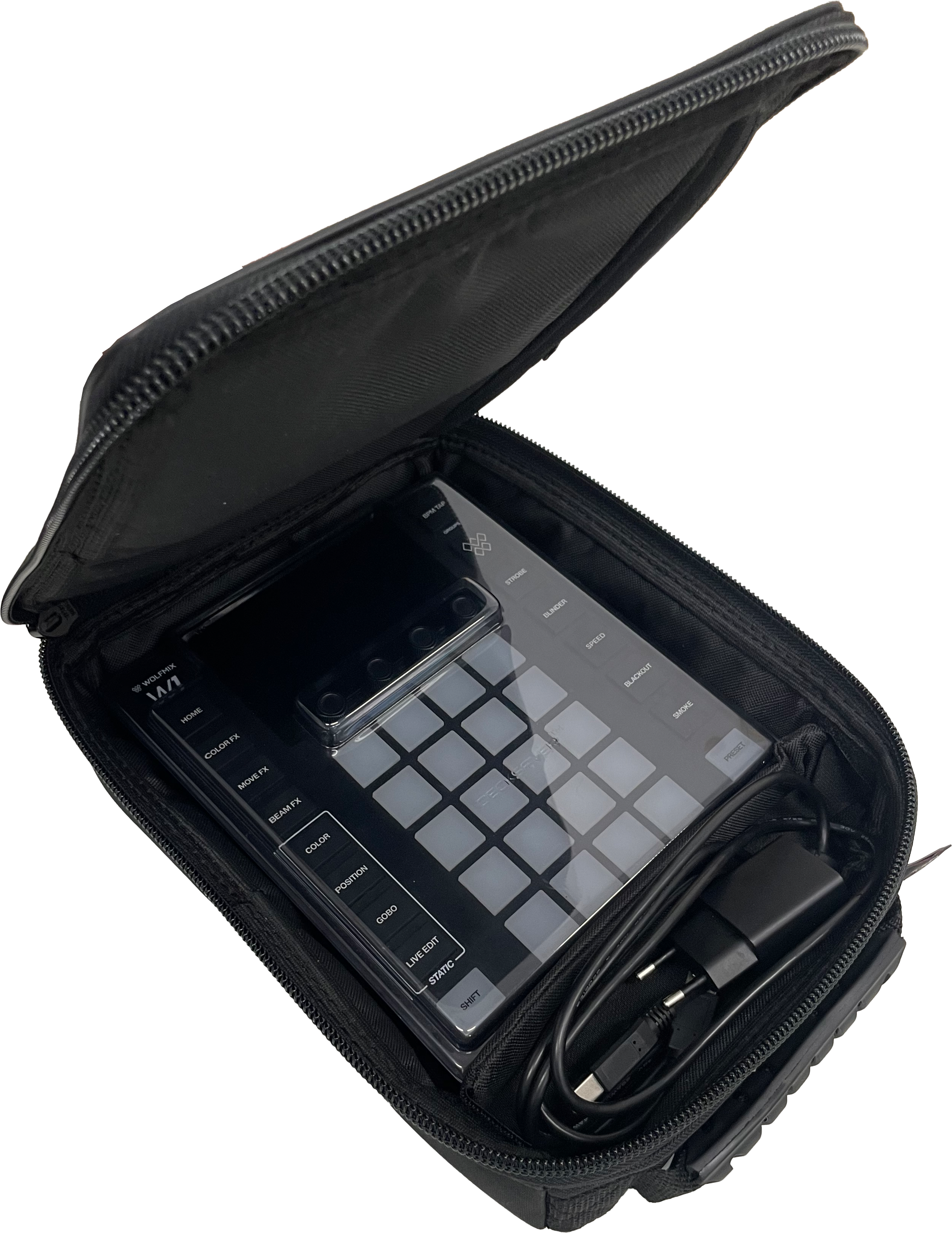 Solidna torba zaprojektowana z myślą o profesjonalistach. Idealnie dopasowana do kontrolera Wolfmix, zapewnia jego maksymalną ochronę podczas transportu. To niezastąpiony wybór dla DJ-ów, realizatorów oświetlenia i ekip eventowych, które cenią niezawodność, porządek i błyskawiczne przygotowanie do pracy – nawet w najbardziej wymagających warunkach.